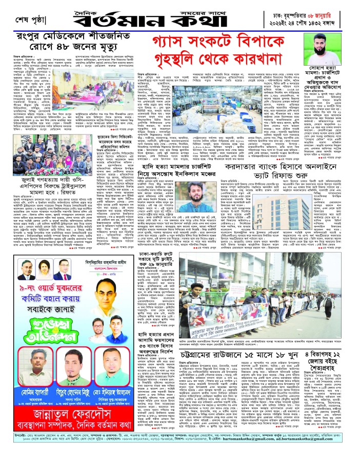 বৃহস্পতিবার, ০৮ জানুয়ারী ২০২৬